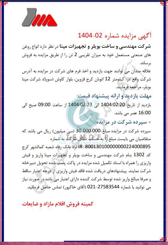مزایده فروش انواع روغن های صنعتی مستعمل به میزان تقریبی ۲ تن