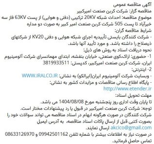مناقصه تامین، نصب و راه اندازی یک ست کامل المنت هیتر الکتریکی ساخت داخل از نوع H۷۷۰۰