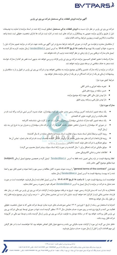 شرح آگهی: مزایده فروش قطعات یدکی مستعمل