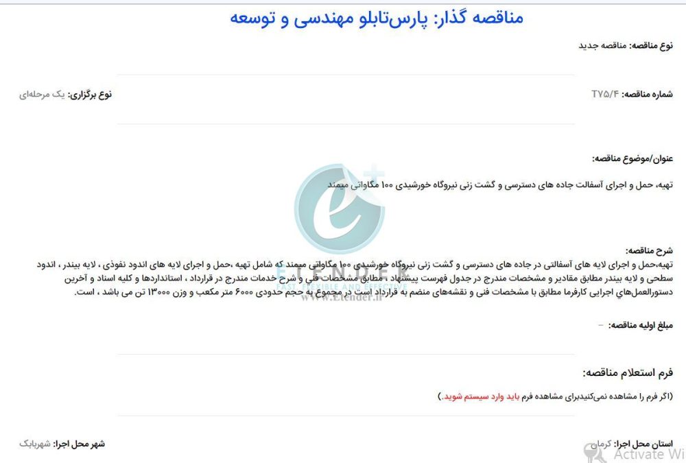 مناقصه گذار: پارس تابلو مهندسی و توسعه