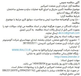 مناقصه پروژه عمرانی (توسعه فضای اداری کارخانه)