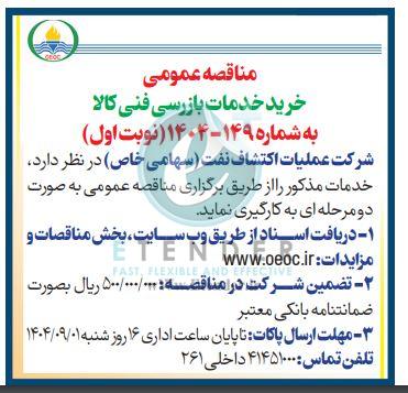 مناقصه خرید خدمات بازرسی فنی کالا شرکت عملیات اکتشاف نفت
