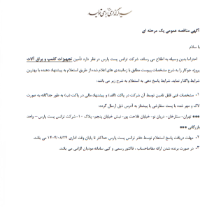 مهلت دریافت اسناد: ۱۴۰۴-۰۸-۲۶