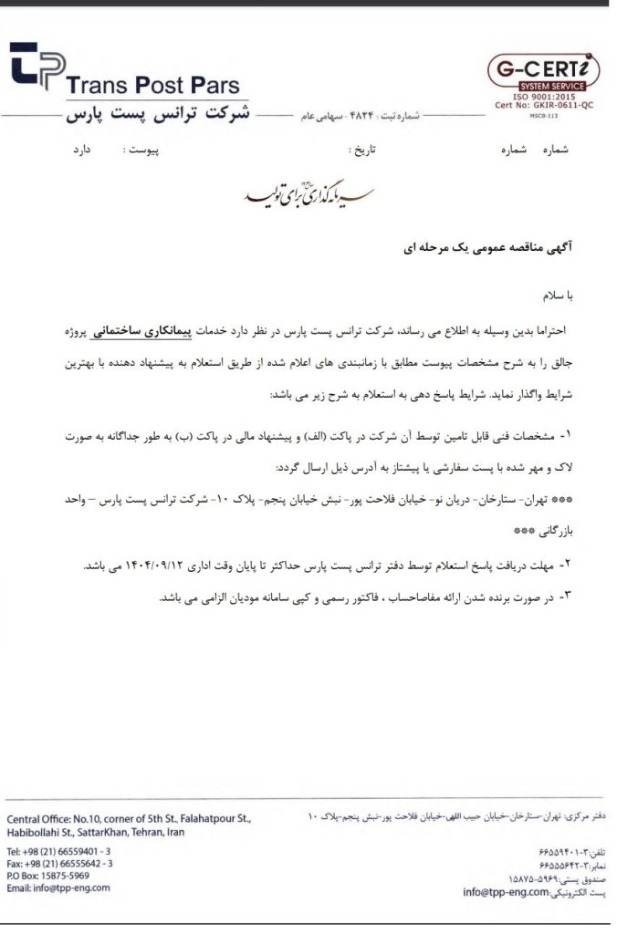 مناقصه گذار: ترانس پست پارس