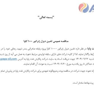 مناقصه گذار: پالایش نفت پایا