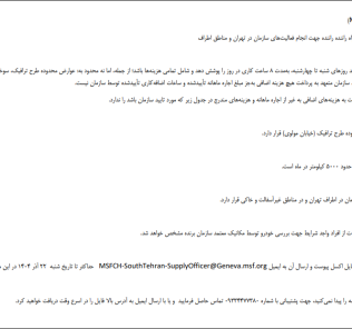 مهلت دریافت اسناد: ۱۴۰۴-۰۹-۲۶