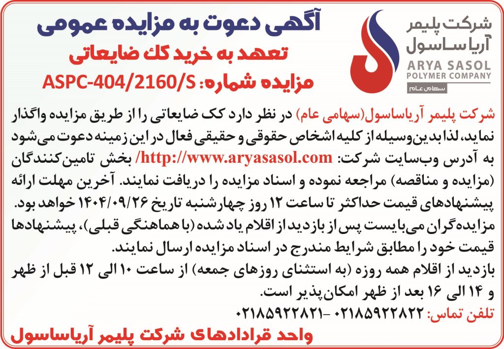 مزایده گذار: پلیمر آریا ساسول