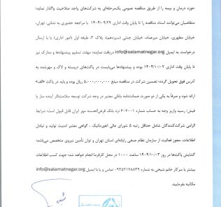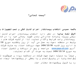 مهلت دریافت اسناد: ۱۴۰۴-۱۰-۰۴