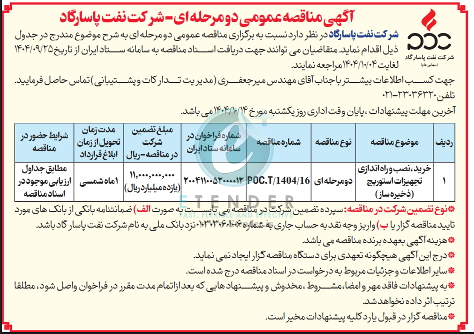 مهلت دریافت اسناد: ۱۴۰۴-۱۰-۰۴