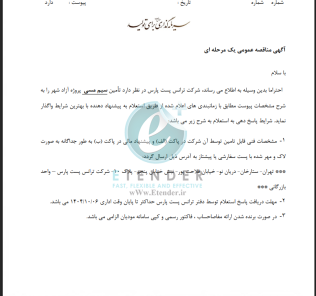 مهلت دریافت اسناد: ۱۴۰۴-۱۰-۱۰