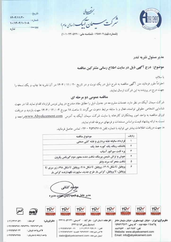 مناقصه گذار: سیمان آبیک