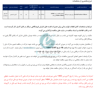 مناقصه خرید قطعات یدکی قفسه های انبارش فروشگاهی سیگار شرکت بی وی تی پارس