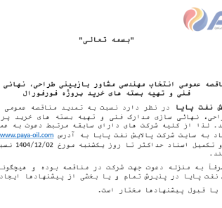 مهلت شرکت در آگهی: ۱۴۰۴-۱۲-۰۲