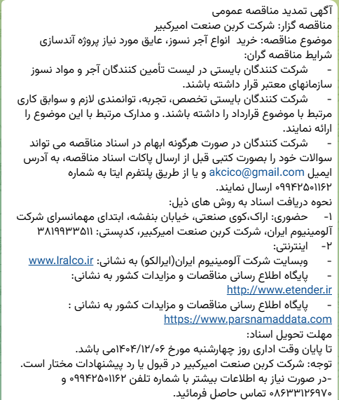مناقصه گذار: کربن صنعت امیرکبیر