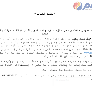 مهلت شرکت در آگهی: ۱۴۰۴-۱۲-۰۶
