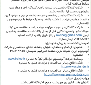 مهلت شرکت در آگهی: ۱۴۰۴-۱۲-۱۶