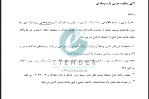 اطلاعات مزایده در مشهد مرتبط با کار خود را در ایران تندر سامانه مناقصات مزایدات کشور به نشانی irantender.net جستجو کنید