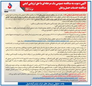 نمونه اطلاع رسانی مناقصه صنایع شهدای حدید :